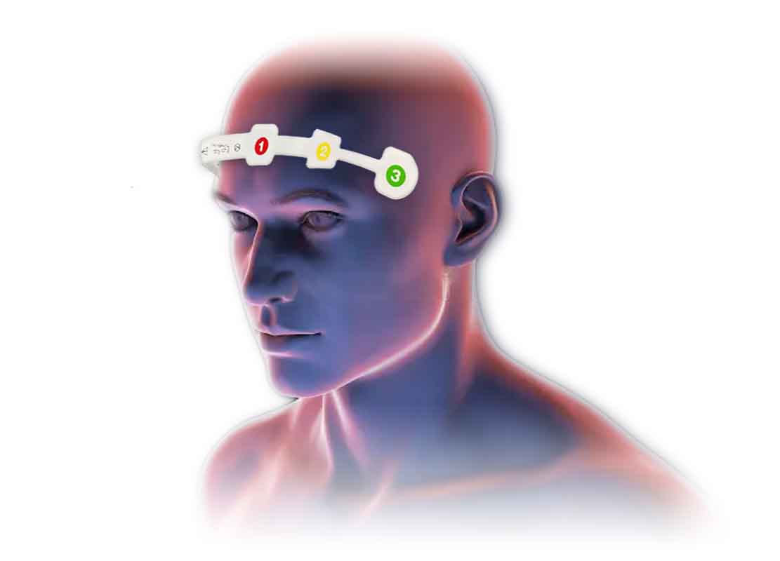Sensor frontal Fácil de Colocar: Éste sensor es como un parche que ayuda a obtener la señal EEG de la región frontal, reduciendo tiempo de preparación del paciente y mejorando la reproducibilidad entre diferentes procedimientos.