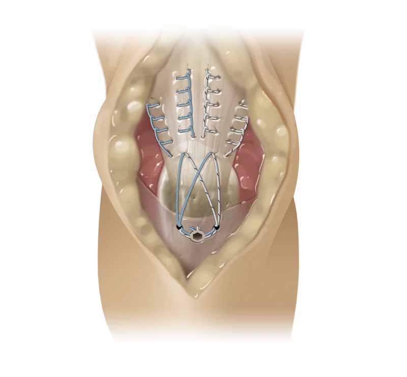 - Tensión y Anudado de la Sutura: Con el implante en sitio, se pasa la sutura por el tejido blando y se tensan los nudos según técnica. El punto de sujeción protege la hebra y facilita un anudado seguro.