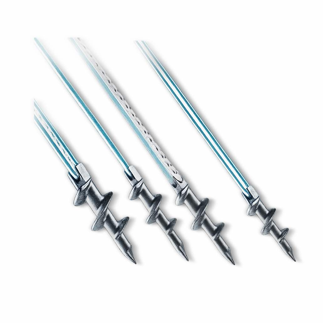 - Inserción y Ajuste. El anclaje puede entrar mediante rotación o impacto controlado hasta quedar al ras o a la profundidad óptima. Su diseño permite un avance estable y predecible.